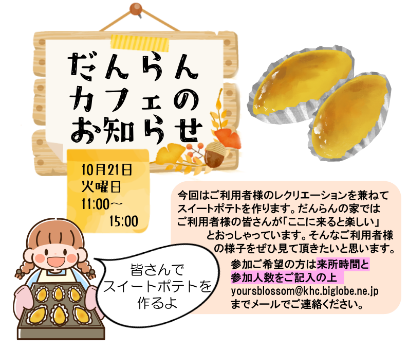 10月21日(火曜日)の11:00~15:00にだんらんカフェを開催します。