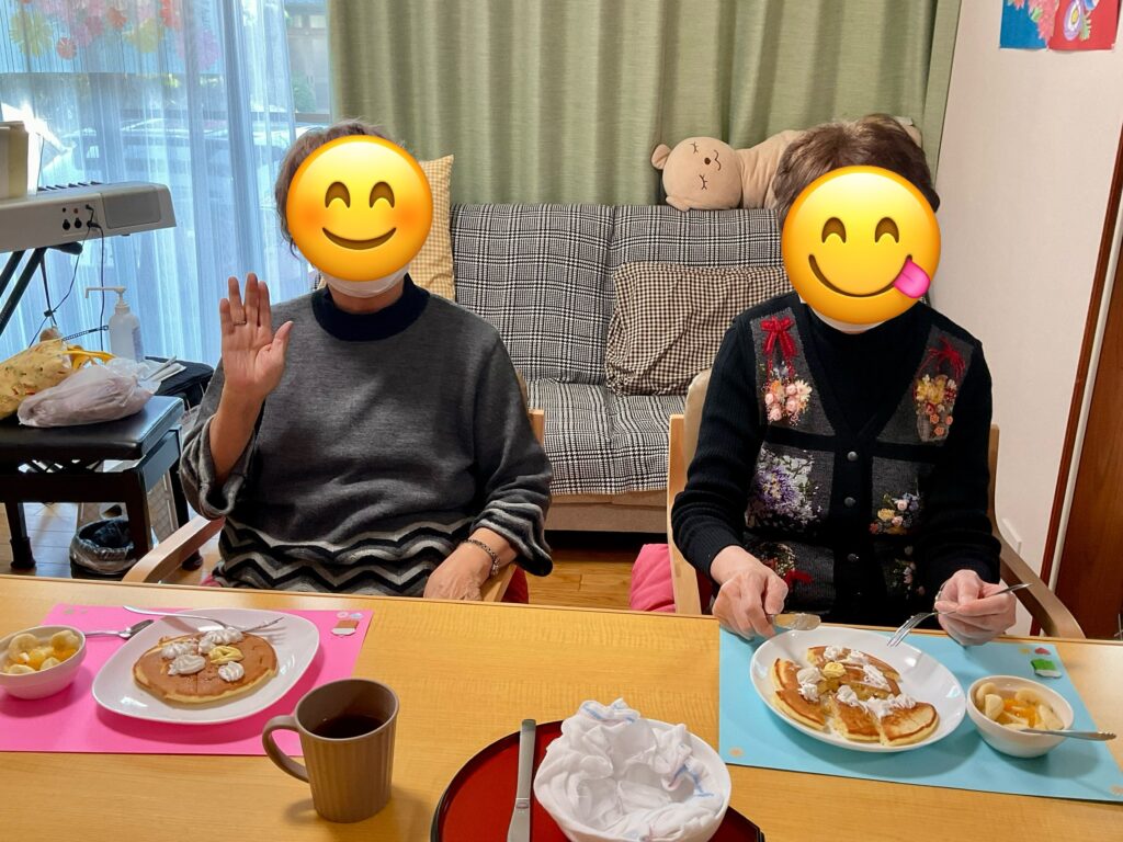 今月のだんらんカフェはホットケーキを作って皆で美味しくいただきました