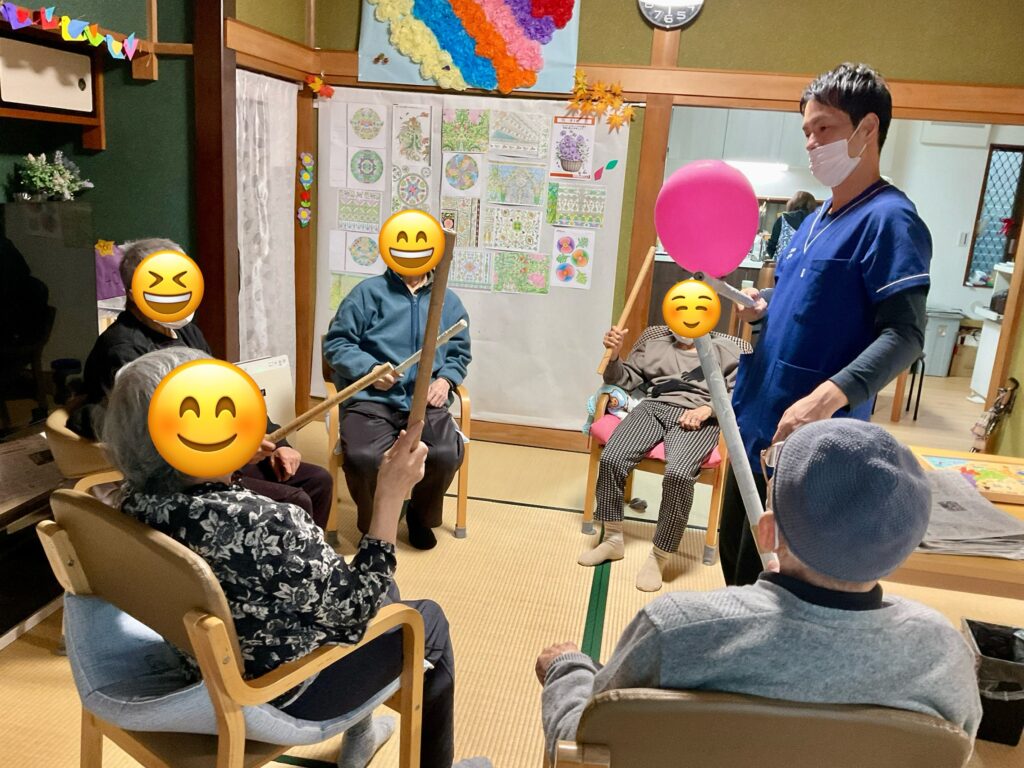 食後は風船などを使った機能訓練で皆さん楽しまれました